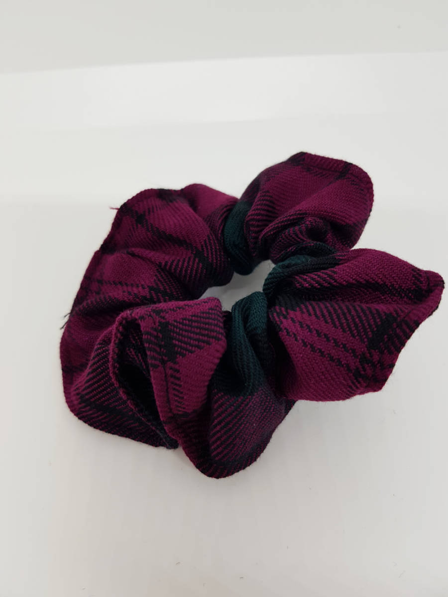 A handmade tartan hair scrunchie available in Royal Stewart, Lindsay, blue and Black Watch