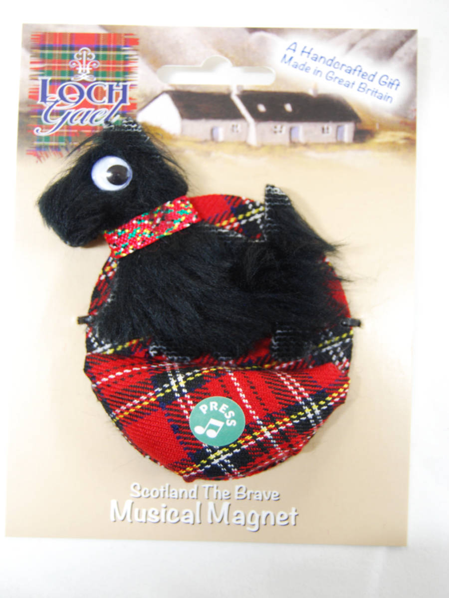 A Handmade scottie or westie magnet that plays Scotland the Brave